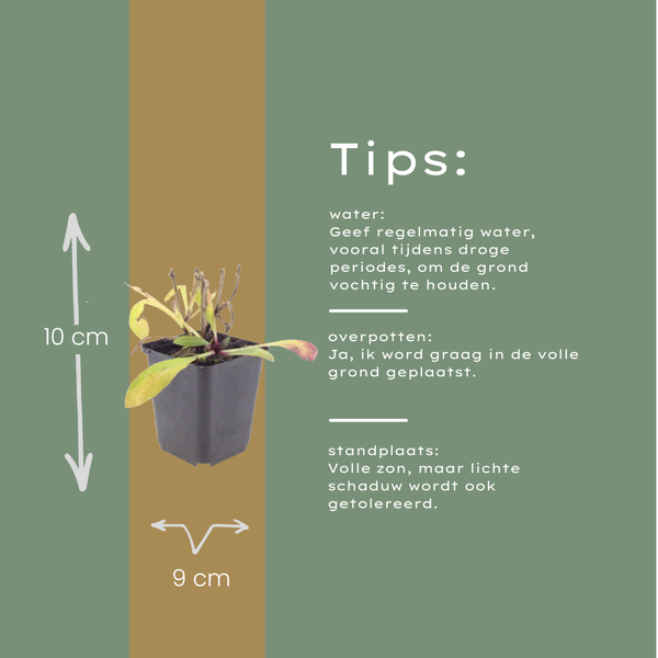 Let op: Planten zijn levende producten en kunnen afwijken van foto en omschrijving. Kleine imperfecties kunnen voorkomen, maar herstellen zich meestal in uw tuin. Onze planten zijn krachtig, duurzaam en worden geleverd in recyclebare kweekpotten, direct vanuit onze kwekerij.