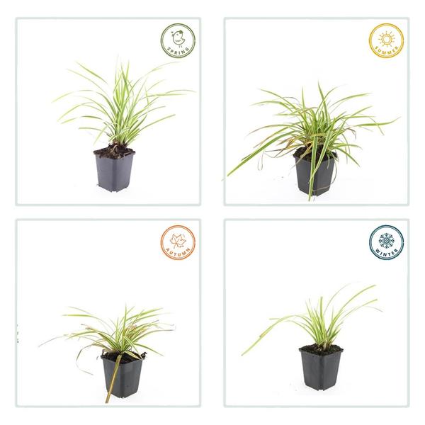 Carex morrowii ‘Aureovariegata’, ook bekend als bontbladige zegge, is een groenblijvende siergras die charme toevoegt aan schaduwrijke plekken in de tuin. De smalle bladeren hebben een unieke, geelgroene variëgatie, met een levendige gele rand die voor een opvallend kleurcontrast zorgt. Deze plant wordt ongeveer 30-40 cm hoog, waardoor hij ideaal is voor randen, borders en potten. Carex morrowii ‘Aureovariegata’ is winterhard en vraagt weinig onderhoud; hij groeit goed in vochtige, goed doorlatende grond en houdt van halfschaduw tot schaduw. Een veelzijdige plant die kleur en structuur geeft aan elke tuin!