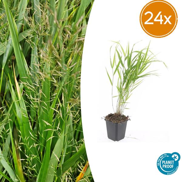 Hakonechloa macra, ook bekend als Japans bosgras, is een sierlijk siergras met boogvormige, groene bladeren die in de herfst prachtig verkleuren naar goudgeel. Ideaal als bodembedekker in schaduwrijke tuinen, waar het voor een zachte, golvende structuur zorgt. Makkelijk in onderhoud en winterhard, perfect om wat beweging en kleur in de tuin te brengen.