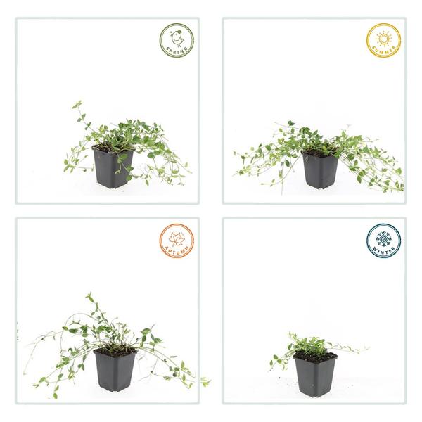 **Vinca minor ‘Gertrude Jekyll’** – Een elegante bodembedekker met diep groene bladeren en schitterende witte bloemen. Deze wintergroene plant is perfect voor schaduwrijke tuinen en helpt onkruid te onderdrukken. Met zijn verfijnde uitstraling voegt hij zowel kleur als structuur toe aan borders en onderbeplanting. Een onderhoudsvriendelijke keuze die het hele jaar door voor een frisse, mooie look zorgt.