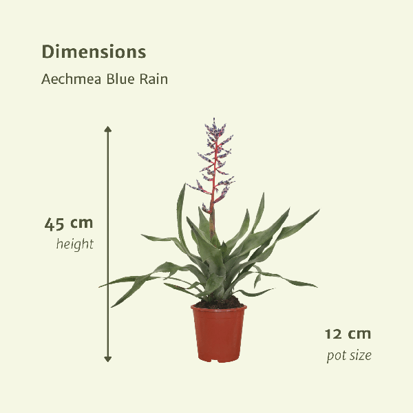 De Aechmea Blue Rain is een plant met prachtige, blauwe bloemen. Er bestaan wel 150 verschillende soorten Aechmea. Deze plant komt oorspronkelijk uit tropisch Midden- en Zuid-Amerika.