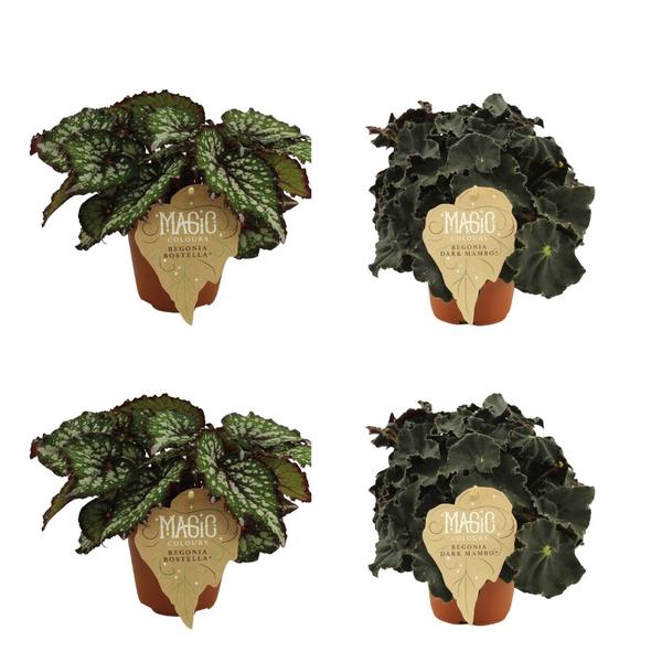 2x Begonia Rex Bostella + 2x Begonia Rex Dark Mambo – 4 stuks – Ø12cm – ↕25cm