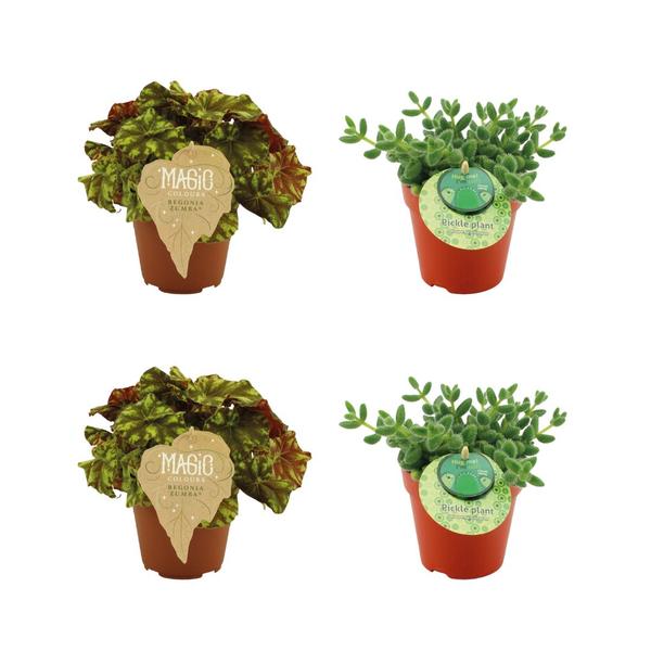 2x Begonia Rex Zumba – 2x Delosperma Echinatum – 4 stuks – Ø12cm – ↕20-25cm