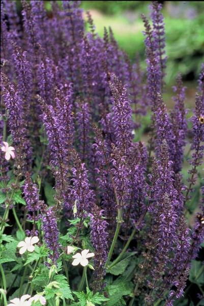 De Salvia nemorosa ‘Mainacht’ is een vaste plant die betovert met zijn intense blauwe bloemenaren. Het bloeit overvloedig van mei tot september en trekt bijen en vlinders aan, waardoor het een kleurrijke toevoeging is aan je tuin. Gemakkelijk te kweken, droogtetolerant en ideaal voor zonnige borders. Een must-have voor elke bloementuin!