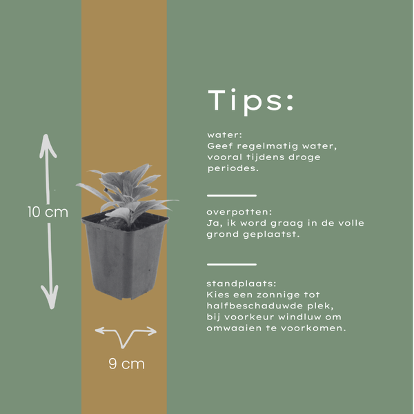 Let op: Planten zijn levende producten en kunnen afwijken van foto en omschrijving. Kleine imperfecties kunnen voorkomen, maar herstellen zich meestal snel in uw tuin. Onze planten zijn krachtig, duurzaam en worden geleverd in recyclebare kweekpotten, direct vanuit onze kwekerij.