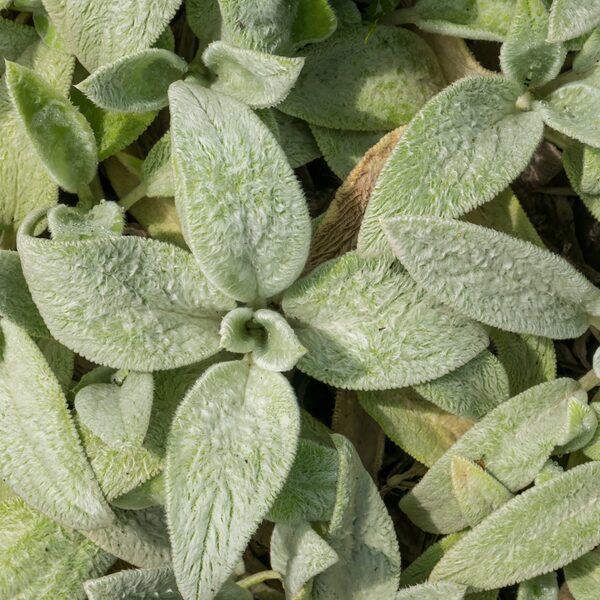 Stachys byzantina ‘Silver Carpet’ is een laagblijvende, bodembedekkende vaste plant met opvallend zacht, zilvergrijs blad dat het hele jaar door sierwaarde biedt. Deze cultivar vormt dichte tapijten en bloeit nauwelijks, waardoor alle energie naar het decoratieve blad gaat. Stachys byzantina ‘Silver Carpet’ is ideaal voor borders, rotstuinen en als bodembedekker in zonnige tuinen, waar hij rust en contrast brengt. De plant groeit het best op een zonnige standplaats in goed doorlatende grond en is onderhoudsarm, droogtebestendig en winterhard.