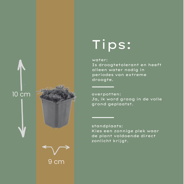 Let op: Planten zijn levende producten en kunnen afwijken van foto en omschrijving. Kleine imperfecties kunnen voorkomen, maar herstellen zich meestal in uw tuin. Onze planten zijn krachtig, duurzaam en worden geleverd in recyclebare kweekpotten, direct vanuit onze kwekerij.