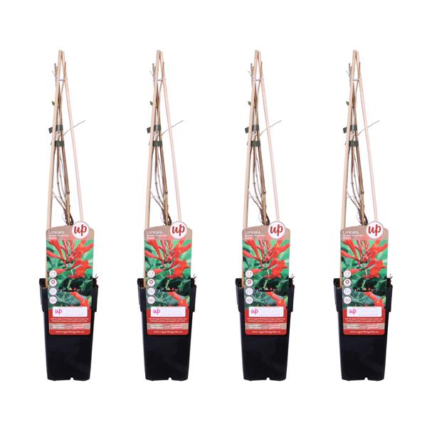 De Lonicera dropmore Scarlet is een mooie kamperfoelie met een rode bloemkleur. Bloeit rijkelijk en houdt van een plek in de volle zon of half schaduw.