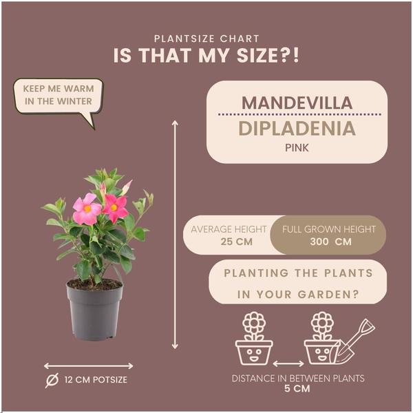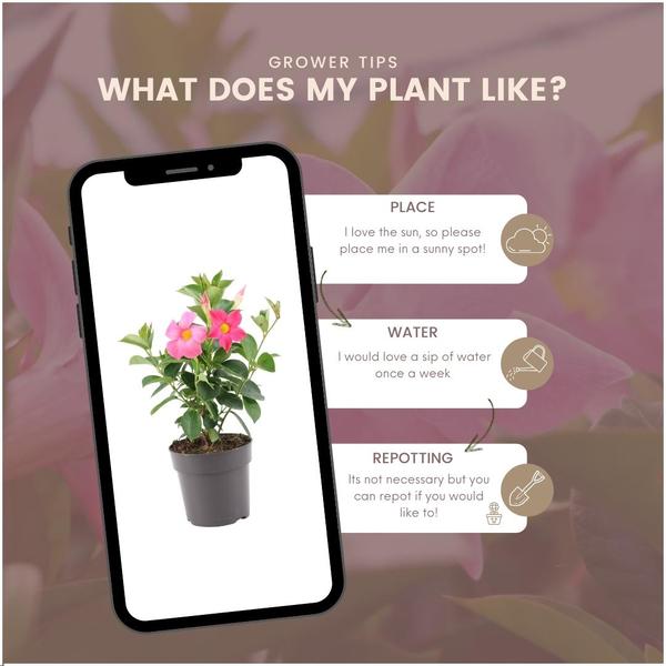 - Hoogte: Bij levering heeft de Dipladenia Pink een hoogte van circa 25 cm.