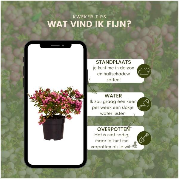 Speciale kenmerken: Prachtige paarse, bolvormige beskleur in de herfst; typische aromatische geur als over de bladeren wordt gewreven; ideaal voor beplanting in herfstgraven. De Pernettya mucronata Gaultheria is niet alleen een prachtige aanwinst voor je tuin, maar ook een onderhoudsarme en robuuste plantkeuze. Hij kan ideaal worden gecombineerd met andere heideplanten en is ook geschikt voor herfstbeplanting in bakken, schalen en kisten. Bestel deze kleurrijke set nu en breng kleur in je tuin!