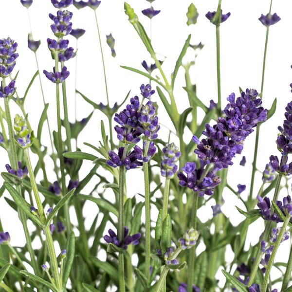 • Lavandula angustifolia heeft smalle, grijsgroene bladeren met een aromatische geur.