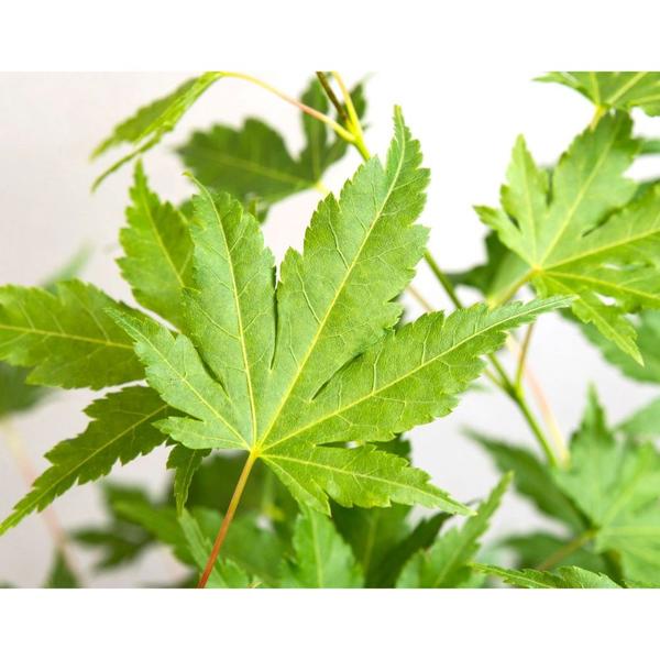 De Japanse esdoorn staat bekend om zijn mooie bladeren, die variëren in vorm, grootte en kleur. De bladeren kunnen handvormig zijn met gelobde randen of kunnen een veervormige structuur hebben. Ze variëren in kleur van groen tot rood, paars, oranje en geel, en sommige cultivars vertonen zelfs een mix van verschillende kleuren op één blad.