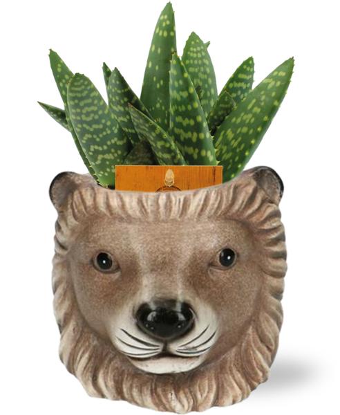 Aloe Paradisicum – Ø10,5cm – ↕15cm + Planter Leeuw D11/13x10cm – Bruin