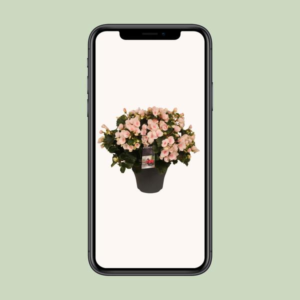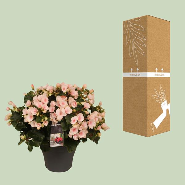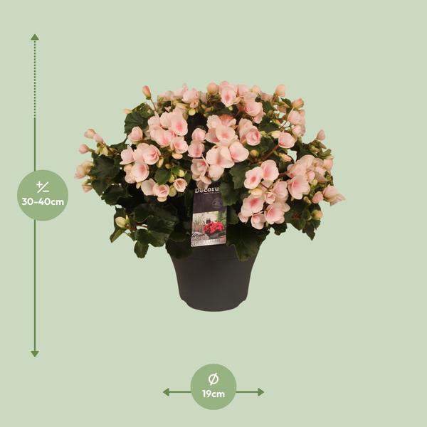 – Deze Begoniaplant, met een huidige hoogte van ongeveer 35cm, zal geleverd worden in een formaat van 19cm.