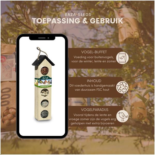– Voederhuisje voor 4 seizoenen om het hele jaar door te voeren.