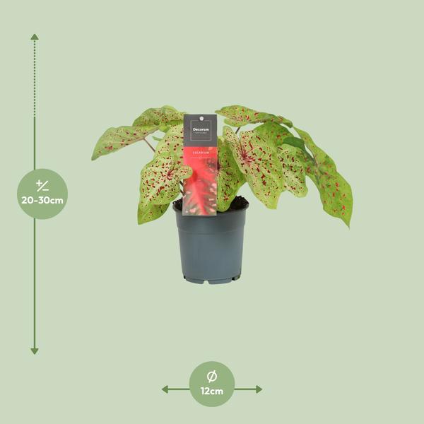 Caladium is een mooie plant die gedijt op een plek met halfschaduw of zon. Het vereist één keer per week water geven om de grond vochtig te houden maar niet doorweekt. Angel wings, zoals Caladium vaak genoemd wordt, geeft de voorkeur aan goed doorlatende grond die rijk is aan organisch materiaal. Wat betreft bemesting, is het het beste om de plant elke twee weken tijdens het groeiseizoen te voeden met een gebalanceerde kamerplantenmest, volgens de instructies op de verpakking. Met de juiste verzorging zal Caladium levendige kleuren en charme brengen in elke binnen- of buitenruimte.