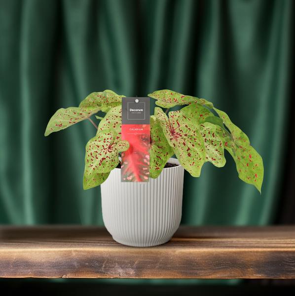 Engelenvleugels, ook bekend als Caladium, worden vaak gebruikt als kamerplant vanwege hun levendige en kleurrijke bladeren. Hun grote, hartvormige bladeren voegen een vleugje elegantie en schoonheid toe aan elke binnenruimte, waardoor ze een populaire keuze zijn voor decoratieve doeleinden.
