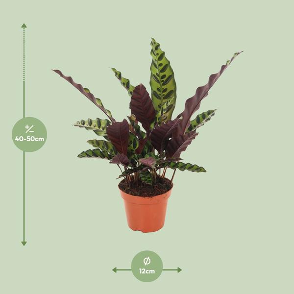 Calathea Insignis, ook wel bekend als de Calathea, is een prachtige kamerplant die een vleugje natuurlijke elegantie toevoegt aan elke ruimte. Afkomstig uit de tropische regenwouden van Brazilië, heeft deze schoonheid lancetvormige bladeren met levendige groene strepen en gedetailleerde patronen. Met zijn tolerantie voor weinig licht en luchtzuiverende eigenschappen is de Calathea perfect om een ontspannen sfeer te creëren in uw huis of kantoor. Ontdek vandaag nog de wonderen van Calathea Insignis en breng een stukje regenwoud in uw binnenruimte. Maak kennis met de prachtige Calathea Insignis, een botanische schoonheid die een prominente plek in je huis verdient! Deze opvallende plant gedijt goed in een halfbeschaduwde of schaduwrijke omgeving en is daardoor een uitstekende keuze voor elke hoek die snakt naar een vleugje elegantie. Om hem in optimale conditie te houden, is het belangrijk om regelmatig water te geven, aangezien hij dol is op vochtige grond. Met zijn levendige bladeren en gemakkelijk te onderhouden karakter is deze Calathea Insignis perfect voor zowel beginnende als ervaren plantenliefhebbers. Mis deze weelderige, schaduwliefhebbende parel niet – haal vandaag nog de Calathea Insignis in huis!Wist je dat de Calathea Insignis, ook wel bekend als de Ratelslangplant, zijn naam heeft gekregen vanwege zijn opvallend gelijkende uiterlijk op slangenhuid? Deze prachtige planten komen oorspronkelijk uit Brazilië en staan bekend om hun uniek gevormde bladeren die lijken op de huid van een slang. Met het levendige groen en de dieppaarse onderkant voegt de Calathea Insignis een vleugje exotische elegantie toe aan elke binnenruimte. Hoewel het verleidelijk kan lijken, is het belangrijk om te onthouden dat deze charmante plant uitsluitend bedoeld is voor decoratieve doeleinden en niet bestemd is voor consumptie. Dus ga achterover zitten, ontspan en geniet van de betoverende schoonheid van dit niet-eetbare juweel!- Calathea Insignis, ook bekend als Calathea, is een populaire kamerplant met een potmaat van 12 cm.- Deze prachtige plant kan uitgroeien tot ongeveer 50 cm in hoogte, waardoor het een ideale keuze is voor kleinere ruimtes.- Calathea geeft de voorkeur aan een plek in halfschaduw, waardoor het perfect is voor binnenruimtes met beperkt licht.- Een interessant feit over Calathea is dat de bladeren gedurende de dag omhoog en omlaag bewegen als reactie op licht. Dit fenomeen, bekend als nyctinastie, voegt een interactief element toe aan de schoonheid van de plant.- De unieke patronen en kleuren op de bladeren van Calathea maken het een visueel opvallende toevoeging aan elk huis of kantoor, terwijl het ook zorgt voor een natuurlijk luchtzuiverend effect.
