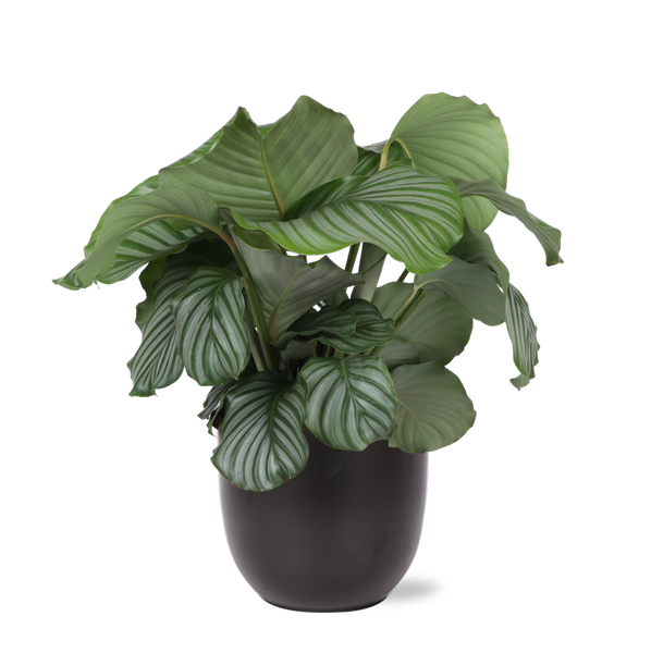 Stap in de betoverende wereld van de Calathea Orbifolia, waar elegantie en exotische schoonheid samenkomen! Met haar opvallende zilverachtige bladeren, bedrukt met fijne groene strepen, is deze kamerplant een meesterwerk van de natuur dat een vleugje tropische pracht naar jouw huis brengt. De Calathea Orbifolia staat niet alleen bekend om haar visuele verfijning, maar ook om haar unieke eigenschap om ‘s nachts haar bladeren op te rollen, wat een bijzonder schouwspel creëert.
