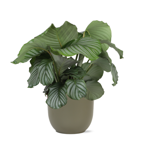 Stap in de betoverende wereld van de Calathea Orbifolia, waar elegantie en exotische schoonheid samenkomen! Met haar opvallende zilverachtige bladeren, bedrukt met fijne groene strepen, is deze kamerplant een meesterwerk van de natuur dat een vleugje tropische pracht naar jouw huis brengt. De Calathea Orbifolia staat niet alleen bekend om haar visuele verfijning, maar ook om haar unieke eigenschap om ‘s nachts haar bladeren op te rollen, wat een bijzonder schouwspel creëert.