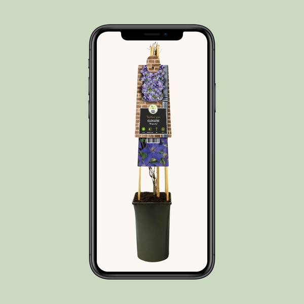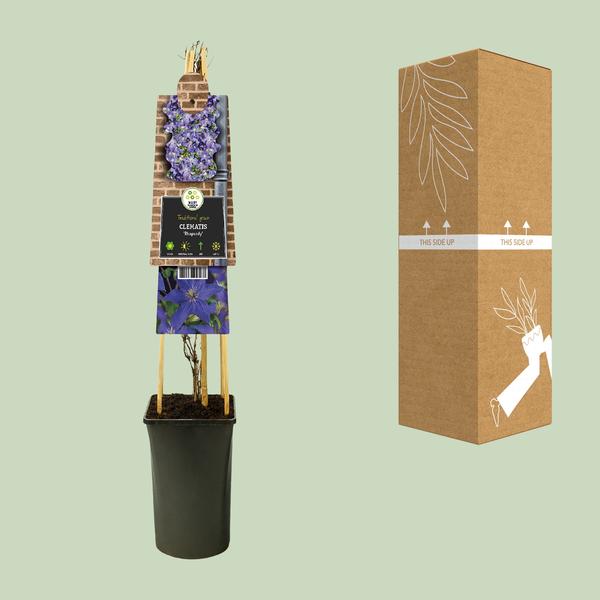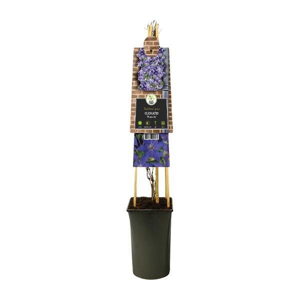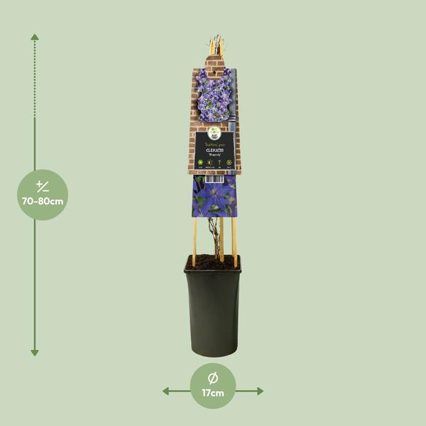 Gezonde Groei: Deze Clematis arriveert met een huidige hoogte van ongeveer 75 cm, klaar voor krachtige groei en bloei.