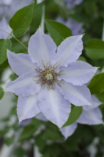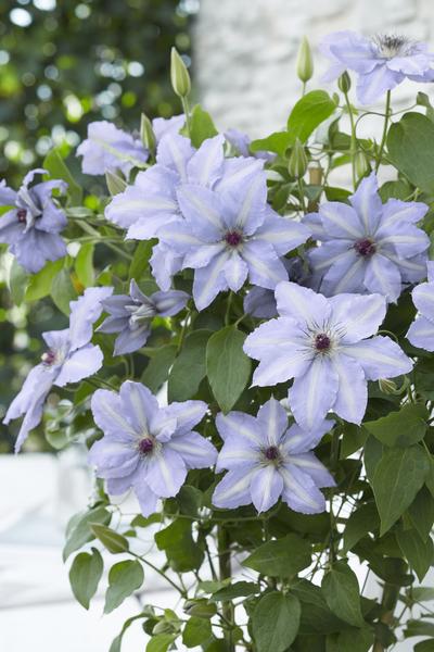 Clematis ‘Tranquilité’ is een aantrekkelijke rijkbloeiende Clematis die vanwege zijn compacte groei zeer geschikt is voor de kleine tuin.