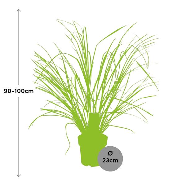 – Dit Pampasgras wordt geleverd in 23 cm en heeft momenteel een hoogte van ongeveer 100 cm, perfect voor directe impact in uw tuin.- Plaats dit Pampasgras op een zonnige plek om optimale groei en levendig blad te garanderen.- De verzorging van dit Pampasgras is ontzettend eenvoudig, waardoor het een onderhoudsarme keuze is voor uw tuin of landschap.- Met zijn hoge, pluizige pluimen voegt dit Pampasgras een vleugje elegantie en schoonheid toe aan elke buitenruimte.- Met prachtige pluizige pluimen en gemakkelijke verzorgingseisen is dit Pampasgras een must-have voor alle natuurliefhebbers.