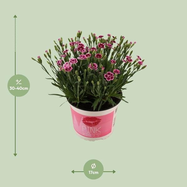Perfecte afmeting voor weergave: Deze Dianthus wordt geleverd met een handige potmaat van 17 cm, ideaal voor elke huis- of kantooromgeving.