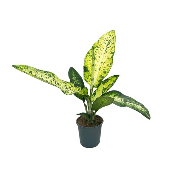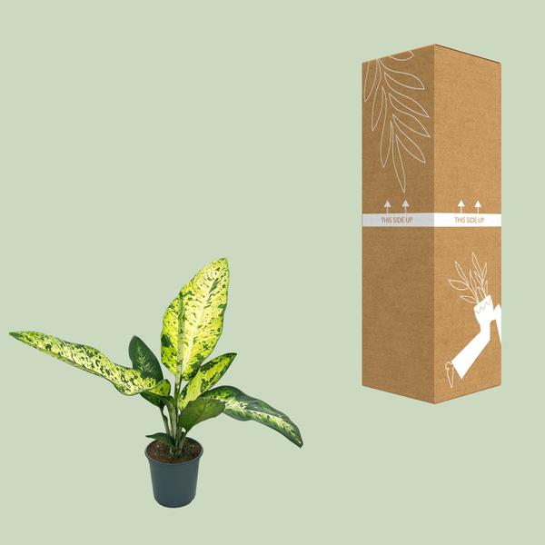 Het is tijd om Dieffenbachia Banana te introduceren, een prachtige kamerplant vernoemd naar de vurige rode planeet. Ook bekend als Dieffenbachia, komt deze woonplant oorspronkelijk uit de tropische regenwouden van Zuid-Amerika. Met zijn grote, levendige bladeren die opvallende patronen laten zien, brengt Dieffenbachia leven en exotische schoonheid in elke binnenruimte. Door zijn onderhoudsvriendelijke karakter is het een perfecte keuze voor drukke individuen die wat groen willen toevoegen. Ideaal om de lucht te zuiveren en een uitnodigende sfeer te creëren, is deze Dieffenbachia Mars een must-have voor plantenliefhebbers die op zoek zijn naar een unieke en opvallende toevoeging aan hun interieur. Maak kennis met Dieffenbachia Banana, de perfecte toevoeging aan jouw indoor groene oase! Deze prachtige plant gedijt in gedeeltelijke schaduw, waardoor het ideaal is voor elke ruimte in je huis. Met zijn weelderige groene bladeren versierd met opvallende variëteit is Dieffenbachia een echte blikvanger. Om deze schoonheid gezond te houden, hoef je hem simpelweg eens per week water te geven en ervoor te zorgen dat de grond vochtig blijft maar niet verzadigd. Met minimale verzorging en maximale impact is Dieffenbachia Mars de perfecte plant om een vleugje natuur aan jouw leefruimte toe te voegen. Haal de jouwe vandaag nog in huis en laat deze plant leven in je huis!Dieffenbachia, vernoemd naar de Duitse botanicus Dieffenbach, is een prachtige kamerplant die elke kamer opvrolijkt! Deze levendige schoonheid is echter alleen bedoeld voor decoratieve doeleinden, omdat het giftige calciumoxalaatkristallen bevat. Het is het beste om het uit de buurt te houden van nieuwsgierige huisdieren en kinderen. Onthoud dat, hoewel Dieffenbachia lijkt op een heerlijke bladige traktatie, het absoluut niet bedoeld is om op te knabbelen! Dus, leun achterover, ontspan en laat deze niet-eetbare wonder een vleugje kleur toevoegen aan je ruimte. Ga ervoor en geniet van zijn esthetische aantrekkingskracht, maar onthoud, het is strikt voor de show, niet om te eten!- Dieffenbachia Banana heeft een potmaat van 24 cm, wat het geschikt maakt voor middelgrote binnenruimtes of als decoratieve toevoeging aan elke kamer.- Deze variant van Dieffenbachia kan tot ongeveer 110 cm hoog worden, wat een vleugje elegantie en groen aan uw leefruimte toevoegt.- Dieffenbachia, ook bekend als Dieffenbachia, is een populaire keuze voor kamerplanten vanwege zijn aantrekkelijke blad en luchtzuiverende kwaliteiten.- Deze plant gedijt goed op halfschaduwplekken, waardoor het ideaal is voor gebieden met gefilterd zonlicht of binnenruimtes weg van direct zonlicht.- Leuk feitje: Wist je dat Dieffenbachia planten een uniek verdedigingsmechanisme hebben? Wanneer ze gekauwd of beschadigd worden, komt er een sap vrij uit hun bladeren dat tijdelijke gevoelloosheid of zwelling in de mond kan veroorzaken, wat de bijnaam “dommekracht” oplevert.