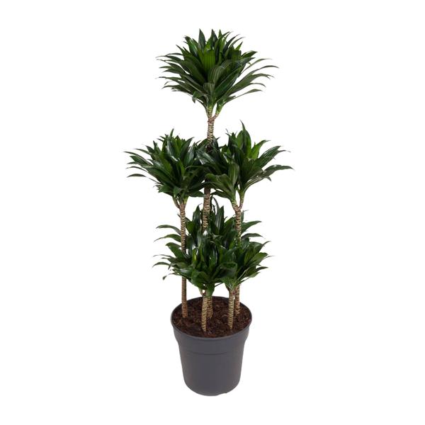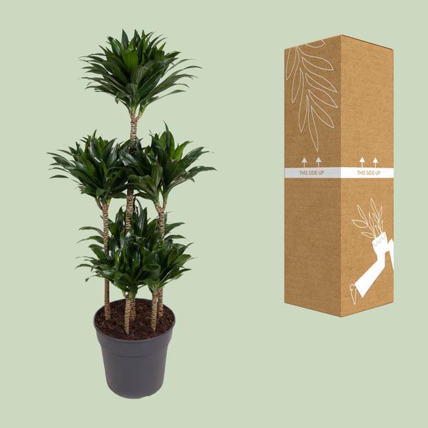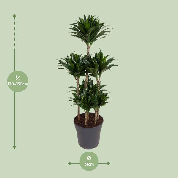 Geleverd in een maat van 31 cm: De Dragontree wordt geleverd in een handig formaat van 31 cm, perfect voor elke ruimte.Huidige hoogte van ongeveer 130 cm: Geniet van een volgroeide Dragontree met een huidige hoogte van ongeveer 130 cm, waardoor uw omgeving direct schoonheid krijgt.Groeit goed in halfschaduw: Deze plant gedijt op een plek die een balans biedt tussen licht en schaduw, waardoor het ideaal is voor binnenruimtes met beperkt zonlicht.Eenvoudig in onderhoud: Met zijn lage onderhoudsbehoefte is de Dragontree een gemakkelijke en probleemloze plant om voor te zorgen, perfect voor drukke individuen of plantenliefhebbers van elk niveau.Prachtige uitstraling: Met levendige groene bladeren versierd met kenmerkende rode randen, voegt de Dragontree een vleugje verfijning en elegantie toe aan elke ruimte.