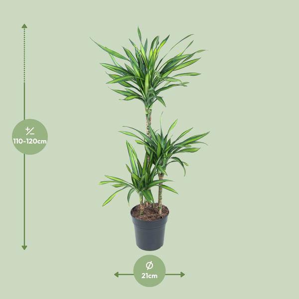 De Dragontree wordt geleverd in een compact formaat, met een hoogte van 21 cm.De huidige hoogte van deze verbluffende plant is ongeveer 120 cm, wat direct een decoratief tintje geeft aan elke ruimte.Groeit goed in gedeeltelijke schaduw, de Dragontree geeft de voorkeur aan een plek die zacht zonlicht ontvangt, waardoor het een ideale toevoeging is aan zowel binnen- als buitenruimtes.Het verzorgen van de Dragontree is een fluitje van een cent, omdat het weinig onderhoud vereist en bekend staat om zijn veerkracht.Met zijn unieke uitstraling gekenmerkt door levendige, zwaardvormige bladeren voegt de Dragontree een vleugje exotische elegantie toe aan elke omgeving.