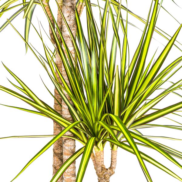 Uiterlijk van de plant: De Dracaena Marginata Sunray heeft lange, smalle bladeren met een levendige mix van groen en gele strepen. Deze bladeren vormen een mooi contrast met de donkere stam van de plant en zorgen voor een tropisch accent in ieder interieur. De bladeren groeien recht omhoog, waardoor de plant een indrukwekkende, maar toch minimalistische uitstraling heeft.