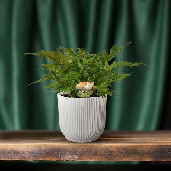 Met zijn delicate bladeren en levendige groene kleur voegt de Japanse Wapenvaren een vleugje elegantie toe aan elke ruimte.