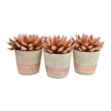 Echeveria Coloured Bronze in Cement Copper Ceramics – 3 stuks – Ø10,5cm – ↕15cm
