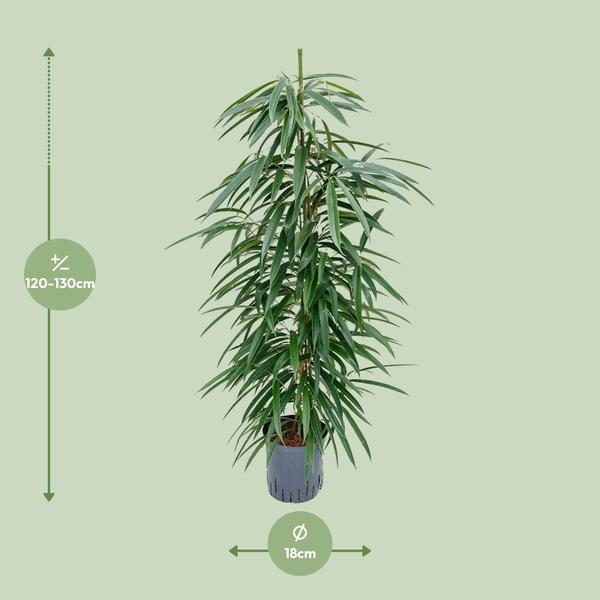 De Ficus binnendijkii Alii, ook wel bekend als de Alii vijg, is een prachtige toevoeging aan elke binnenruimte. Met zijn elegante lange bladeren gedijt deze plant goed op een zonnige plek. Om een gezonde groei te garanderen, heeft het regelmatig water nodig. Vermijd overbewatering om wortelrot te voorkomen. Met zijn lage onderhoudsbehoefte is de Ficus binnendijkii Alii perfect voor zowel beginnende als ervaren planteneigenaren. Verrijk je leefruimte met deze verbluffende plant en geniet van de sfeer die het met zich meebrengt. Ontdek vandaag nog de voordelen en schoonheid van de Alii vijgplant!