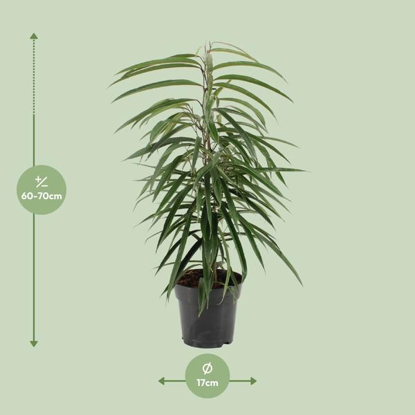 Maak kennis met de Ficus binnendijkii Alii – de perfecte kamerplant voor groenliefhebbers! Ook bekend als Ficus, komt deze prachtige plant uit de tropische regenwouden van Azië. Met zijn slanke, glanzende bladeren en gracieuze takken voegt hij een elegante touch toe aan elke ruimte. Gemakkelijk te verzorgen, gedijt deze Ficus goed bij weinig tot helder indirect licht, waardoor het een ideale keuze is voor elke kamer in uw huis of kantoor. Verfraai uw binnen-oase met de Ficus binnendijkii Alii en geniet het hele jaar door van zijn schoonheid. Om voor een Ficus plant te zorgen, moet deze op een plek worden geplaatst waar het zonlicht ontvangt. Het water geven van de plant eens per week is voldoende. Ficus groeit goed in goed doorlatende grond, dus het gebruik van een mengsel van zanderige en humusrijke grond is ideaal. Wat betreft bemesting wordt aanbevolen om de plant elke 4-6 weken tijdens het groeiseizoen te voeden met een gebalanceerde vloeibare meststof. Over het algemeen zorgen het bieden van de juiste hoeveelheid licht, water en grondsoort, samen met regelmatige bemesting, voor de gezondheid en groei van uw Ficus plant.Wist je dat Ficus binnendijkii Alii, ook wel bekend als de Alii-vijgenboom, niet alleen een fantastische decoratieve plant is, maar ook geweldig is voor het verbeteren van de luchtkwaliteit binnenshuis? Met zijn lange, elegante bladeren en opvallende gelijkenis met een boom, is deze kamerplant een populaire keuze om een vleugje natuurlijke schoonheid aan elke ruimte toe te voegen. Ondanks zijn uitnodigende uiterlijk is het echter belangrijk om te onthouden dat Ficus binnendijkii Alii puur ter decoratie is en niet geschikt is voor consumptie. Bewonder dus zijn schoonheid en geniet van de luchtzuiverende voordelen, maar houd die smaakpapillen weg – deze plant is alleen voor visueel plezier!- Ficus binnendijkii Alii is een populaire plant met een potmaat van 17 cm.- Deze Ficus-soort bereikt typisch een hoogte van ongeveer 70 cm.- Ficus binnendijkii Alii staat ook bekend als Ficus.- Deze plant gedijt goed op een zonnige plek.- Leuk weetje: Ficus planten staan bekend om hun luchtzuiverende eigenschappen, waardoor ze de binnenluchtkwaliteit kunnen verbeteren.