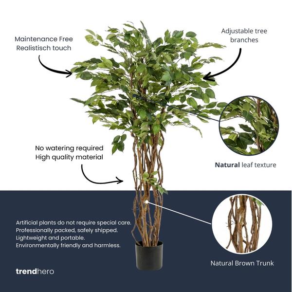 De Ficus Liana kunstplant van 140 cm is de ideale keuze voor wie op zoek is naar groen in huis zonder gedoe. Dankzij de natuurgetrouwe afwerking lijkt deze kunstboom net echt – een stijlvolle en onderhoudsvrije oplossing voor elk interieur. Of je nu een lege hoek in de woonkamer wilt opvullen of sfeer zoekt op kantoor, deze kunstplant past altijd.