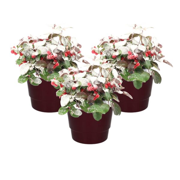 Gaultheria Pr. ‘Big Berry’ + Snow + Pot Basic Bordeaux – 3 stuks – Ø10cm – ↕15cm