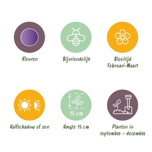 Of u nu kiest voor een border of een pot op het balkon, deze bloembol past perfect in elke setting. De Crocus Blue bloeit rijkelijk en maakt uw tuin of terras fleurig en levendig. Geniet van de schoonheid van de natuur met deze aantrekkelijke bloembol.