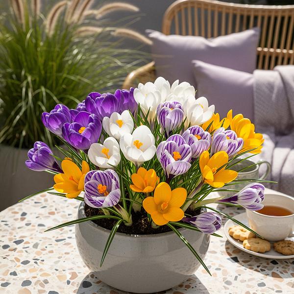 Crocus Large Flowering Mix is de perfecte toevoeging aan uw tuin. Deze bloembollen zijn ideaal voor in een border, maar ze doen het ook geweldig in een pot op uw balkon of terras. Met hun kleurrijke bloemen brengen ze een fleurig accent in elke buitenruimte.
