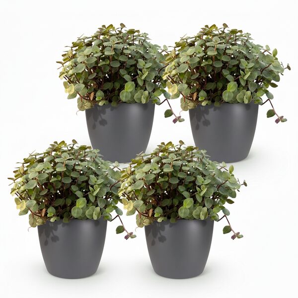 Green boutiQ – Kamerplant – Calissia repens – Kattengras – Huisdiervriendelijk – Groen – 4 Planten – met Potter Grijs – Pot 12cm – Hoogte 17-20cm
