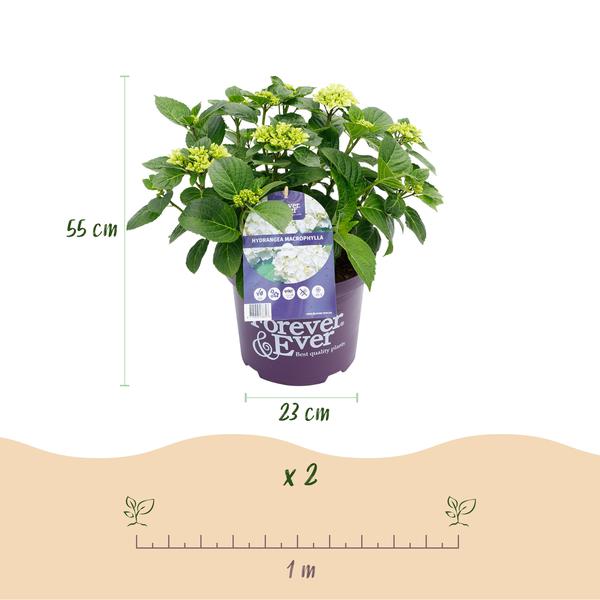 De Hydrangea macrophylla Forever & Ever Wit is een prachtige tuin hortensia met mooie bloemen en kleurenpracht. Deze hortensia is perfect voor elke tuin, border of als opvallende blikvanger in een pot op het terras of balkon.