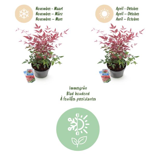 Green boutiQ – Tuinplant – Nandina Obsessed – Rood – 2 Planten – Groenblijvend – Weinig Onderhoud – Pot 17cm Hoogte 45cm