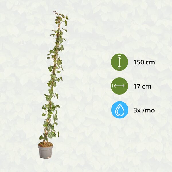 Voor optimale groei heeft de Hebera Hibernica regelmatige watergift en bemesting nodig, vooral tijdens de groeiperiode in de lente en zomer. Hoewel tolerant voor een breed scala aan bodemsoorten, floreert deze klimop het best in goed gedraineerde grond. Jaarlijks snoeien helpt om de vorm te behouden en bevordert een dichte groei.