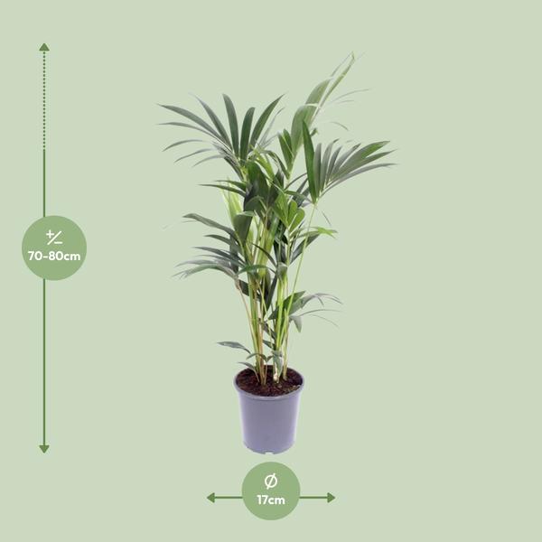 Maak kennis met onze iconische kamerplant, de Howea forsteriana, ook wel bekend als de Kentia Palm. Deze prachtige palmen komen oorspronkelijk van het betoverende Lord Howe Island en brengen een vleugje tropisch paradijs in elke ruimte. Met hun slanke stammen en weelderige, boogvormige bladeren tillen ze moeiteloos elk interieurontwerp naar een hoger niveau. Bekend om hun vermogen om de lucht te zuiveren, voegen deze onderhoudsarme planten een elegante en vreedzame sfeer toe terwijl ze de kwaliteit van de binnenlucht verbeteren. Omarm de tijdloze schoonheid van de Kentia Palm en transformeer uw huis of kantoor tot een rustige oase. Bestel de uwe nu en geniet van de voordelen van dit groene wonder. De Howea forsteriana, ook wel bekend als de Kentia Palm, is een majestueuze plant die een vleugje elegantie toevoegt aan elke ruimte. Deze onderhoudsarme schoonheid gedijt in gedeeltelijke schaduw tot schaduwrijke omgevingen. Als onderdeel van de verzorging dient deze palm eens per week water te krijgen om zijn weelderige en levendige bladeren te behouden. Met zijn vermogen om de lucht te zuiveren, is deze kamerpalm een perfecte keuze voor degenen die een gezonde en verfrissende omgeving waarderen. Investeer vandaag nog in deze prachtige Kentia Palm en geniet van zijn schoonheid terwijl u moeiteloos bijdraagt aan een schonere atmosfeer.De Howea forsteriana, ook wel bekend als de Kentia Palm, is niet alleen een prachtige kamerplant, maar ook een natuurlijke luchtzuiveraar! De elegante, veerachtige bladeren kunnen schadelijke gifstoffen zoals formaldehyde en benzeen uit de lucht verwijderen, waardoor een gezondere omgeving wordt bevorderd. Het is echter belangrijk op te merken dat, hoewel deze palmboom er verleidelijk uitziet, hij strikt voor decoratieve doeleinden bedoeld is. Dus weersta de drang om een hapje te nemen en laat deze indrukwekkende plant een vleugje tropisch paradijs in uw huis brengen zonder u zorgen te maken over ongewenste maagpijn!Howea forsteriana, ook bekend als de kentia palm, is een populaire kamerplant.Deze plant heeft een potmaat van 17 cm, waardoor hij geschikt is voor kleine tot middelgrote ruimtes.Hij bereikt typisch een hoogte van ongeveer 75 cm, waardoor hij een vleugje elegantie aan elke kamer toevoegt.Howea forsteriana gedijt goed in halfschaduwrijke gebieden, waardoor hij perfect is voor plekken met gedeeltelijk zonlicht.Leuk feitje: Howea forsteriana is een uitstekende luchtzuiveraar en helpt de binnenluchtkwaliteit van je huis of kantoorruimte te verbeteren.
