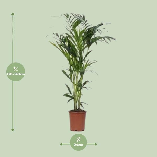 Met een huidige hoogte van ongeveer 140 cm, zorgt de Kentia Palm direct voor impact in elke kamer.