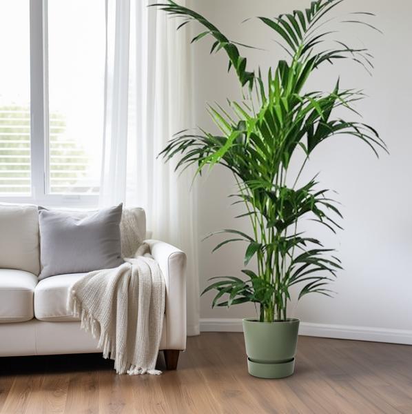 De Kentia Palm is niet alleen een visueel aantrekkelijke plant, maar het heeft ook luchtzuiverende eigenschappen. Het verwijdert efficiënt schadelijke gifstoffen zoals formaldehyde, benzene en koolmonoxide, waardoor het een uitstekende keuze is om de luchtkwaliteit binnenshuis te verbeteren. Met de juiste verzorging, inclusief voldoende zonlicht en regelmatig water geven, kan de Kentia Palm tot wel 10 voet hoog groeien. Zijn onderhoudsarme karakter en aanpassingsvermogen aan verschillende lichtomstandigheden maken het een populaire keuze voor zowel ervaren als beginnende plantenliefhebbers. Of je het nu in je woonkamer, kantoor of zelfs badkamer plaatst, de Kentia Palm brengt zeker een vleugje groen en frisheid in je binnenruimte.