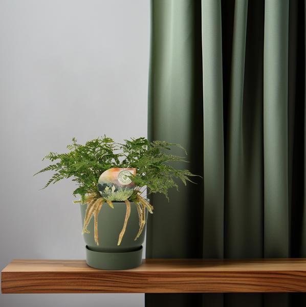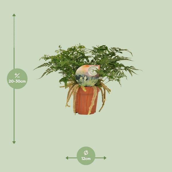 Met een maximale hoogte van 12 inch is de Bear’s Foot Fern een uitstekende toevoeging aan je binnentuin. De bladeren lijken op de poot van een beer, vandaar de naam, en de levendige groene kleur voegt een vleugje natuur en frisheid toe aan elke ruimte. Deze varen geeft de voorkeur aan indirect licht en matige luchtvochtigheid, waardoor hij perfect is voor gebruik binnenshuis. Als de Bear’s Foot Fern goed verzorgd wordt, kan hij schoonheid brengen en de lucht in huis zuiveren, waardoor het een heerlijke en nuttige keuze is voor plantenliefhebbers.