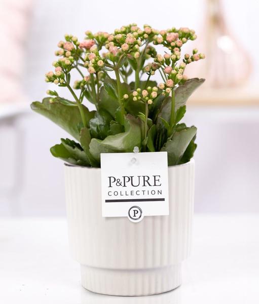 - De Kalanchoe Pink heeft donkergroene, glanzende bladeren en compacte bloemtrossen in een zachte roze tint.