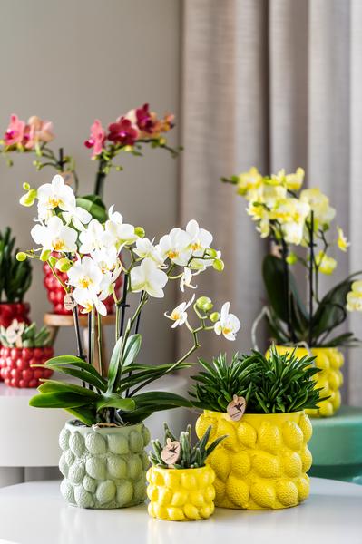 Voeg wat kleur toe aan je interieur met onze prachtige keramieken citrus pot in het geel in potmaat 6 cm. Deze pot is perfect voor een plek van je favoriete plant en zal zeker een frisse uitstraling aan elke ruimte geven. De keramieken pot zorgt ervoor dat de plant helemaal tot z’n recht komt. Haal nu de natuur in huis en laat je interieur stralen.